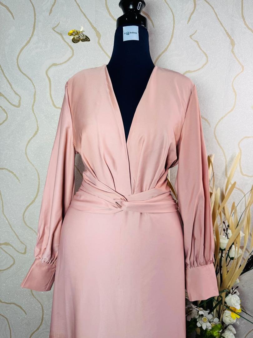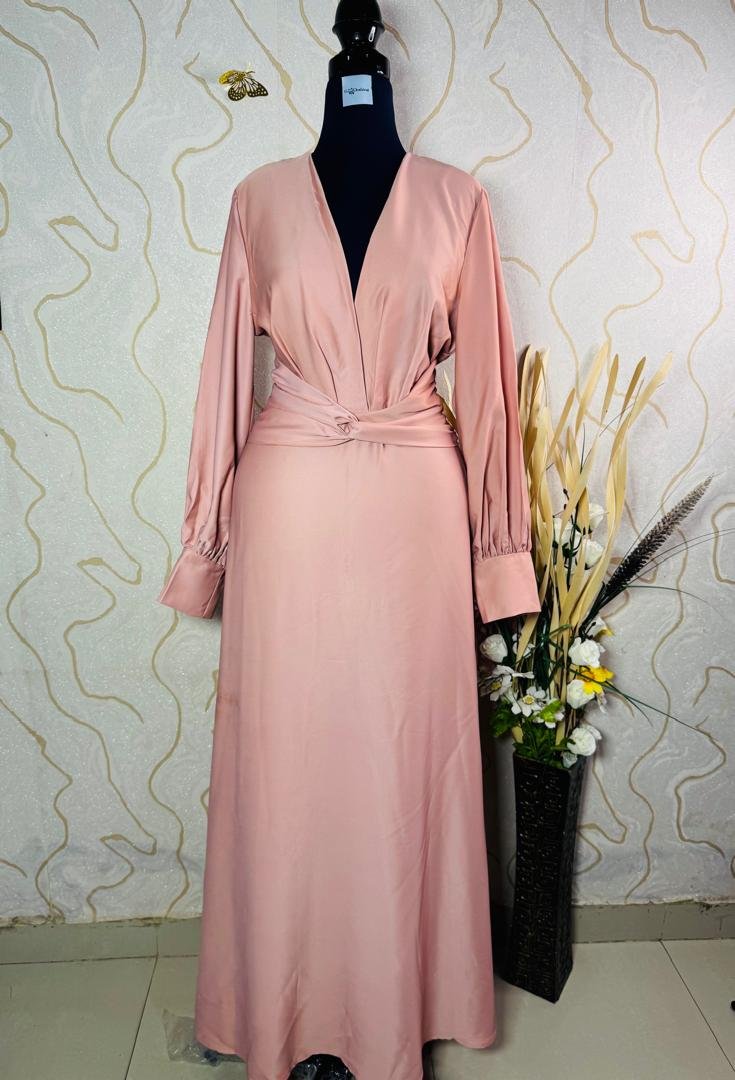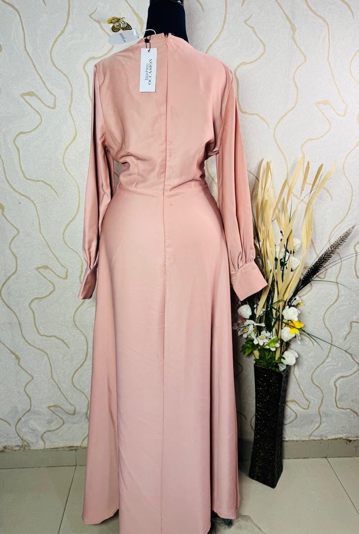 Satin maxi side split gown with front twist.