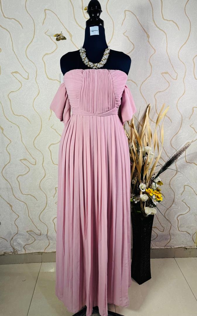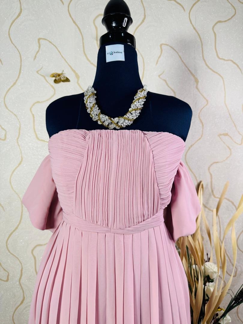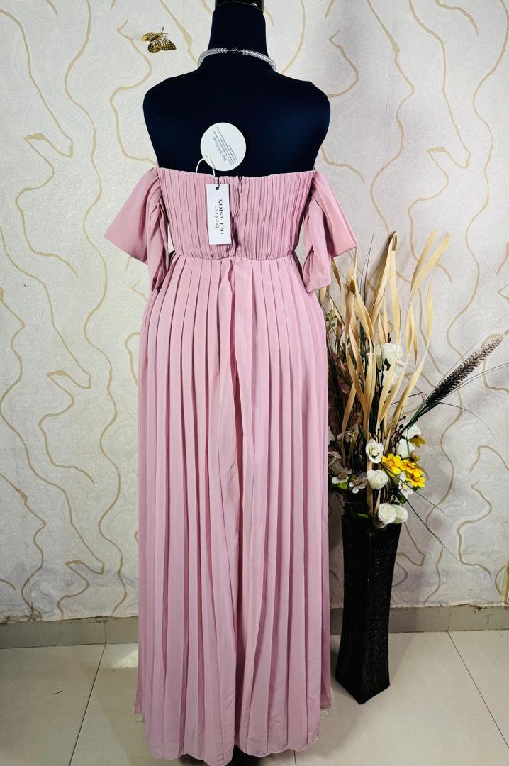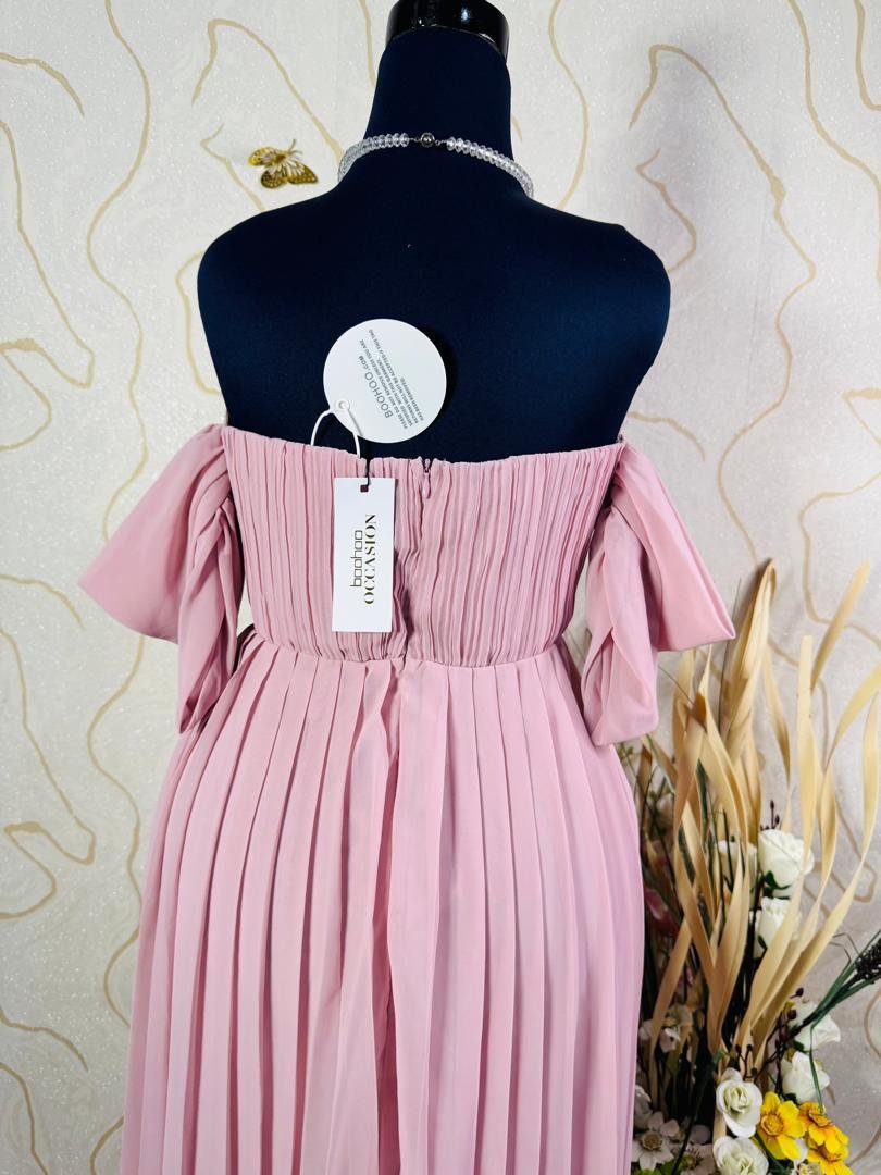 Be the first to review “Pleated Bardot maxi dress – blush”