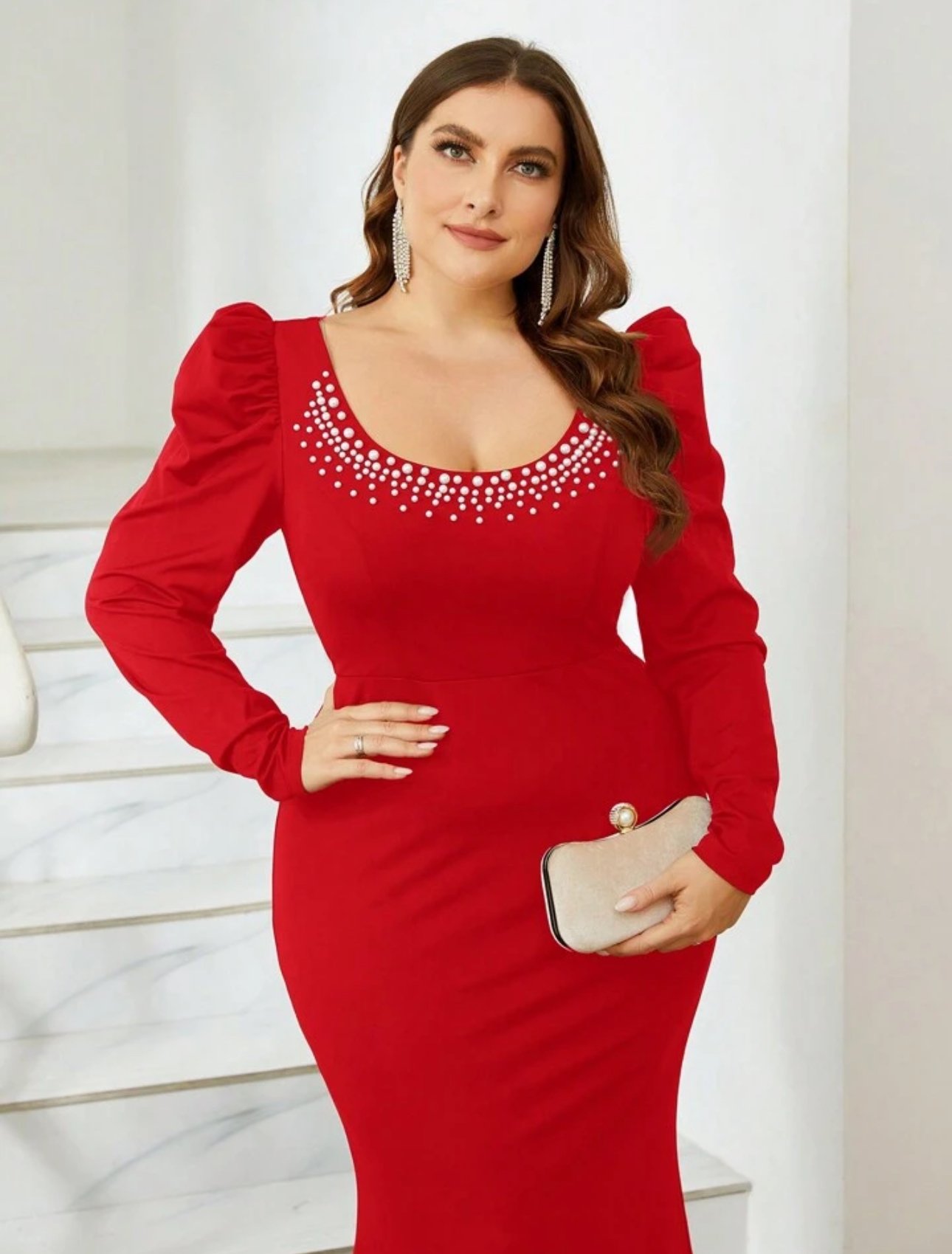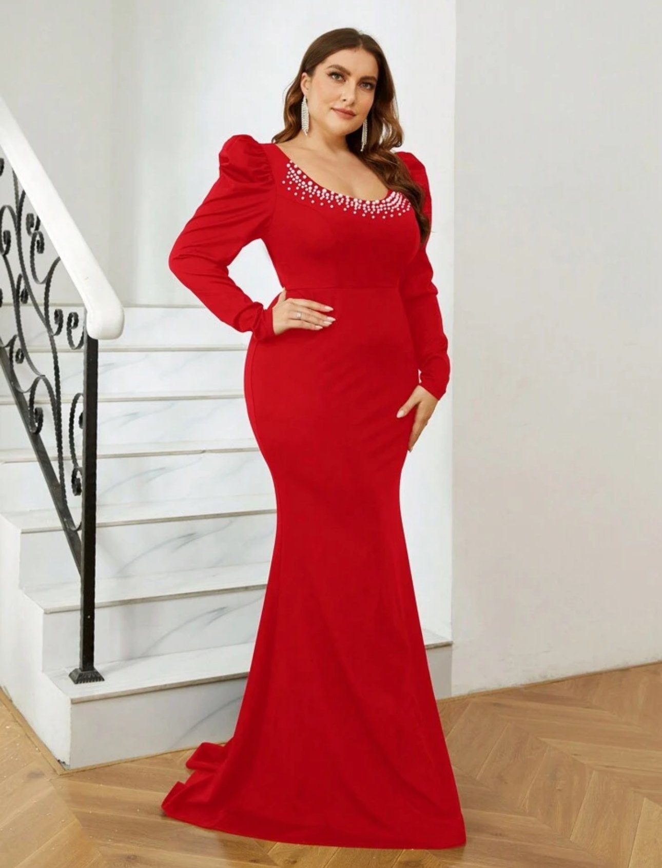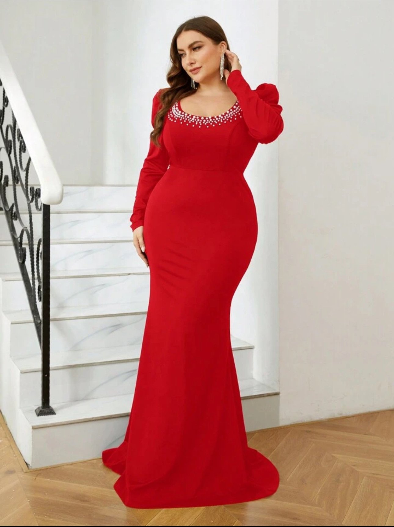 Red beaded neck mermaid gown