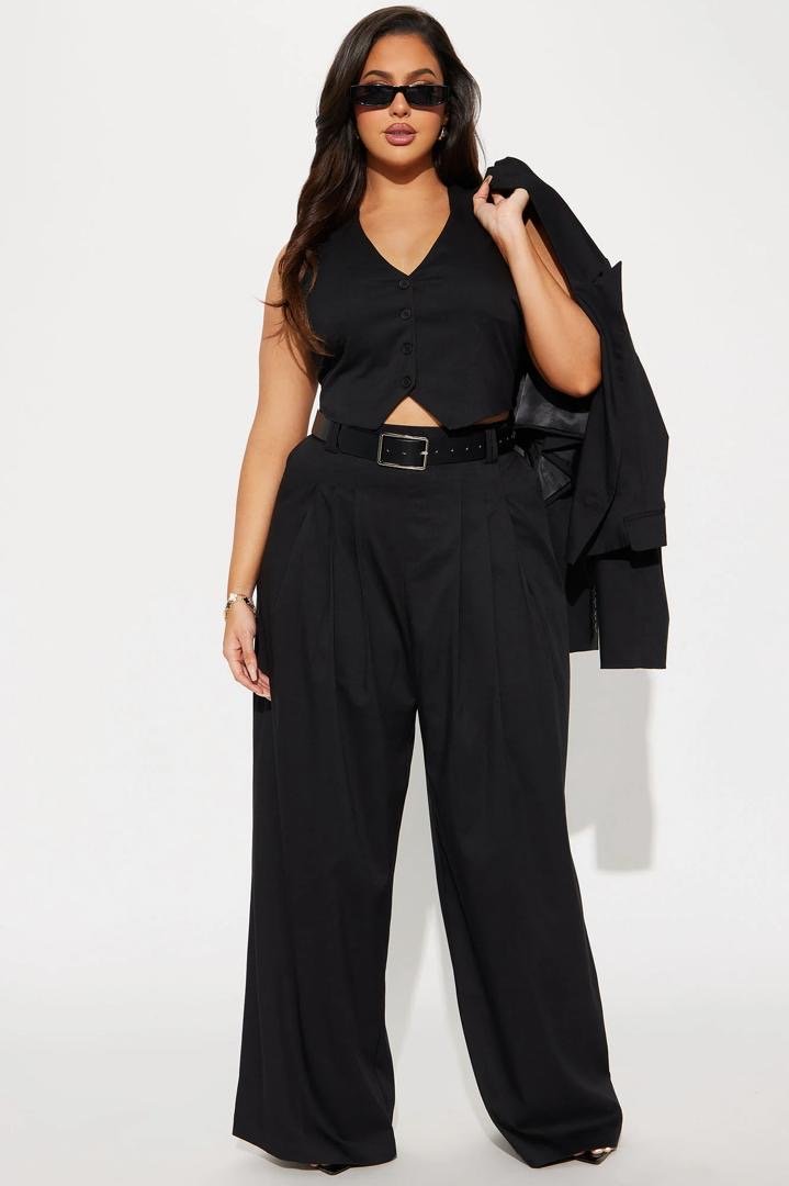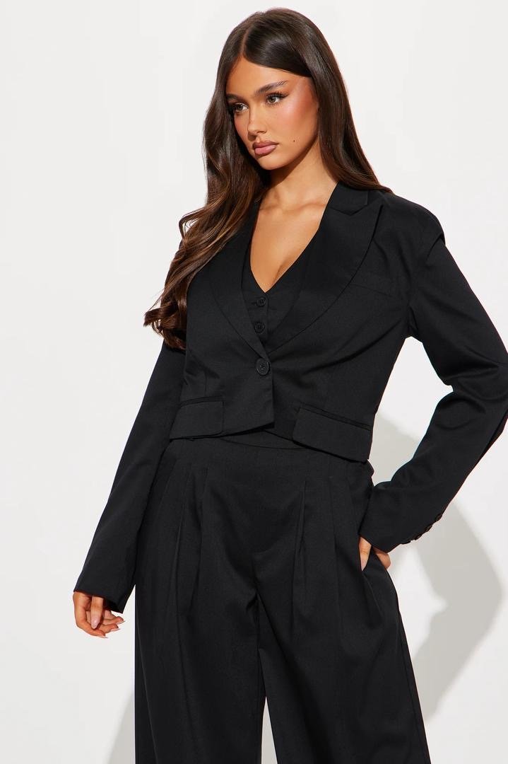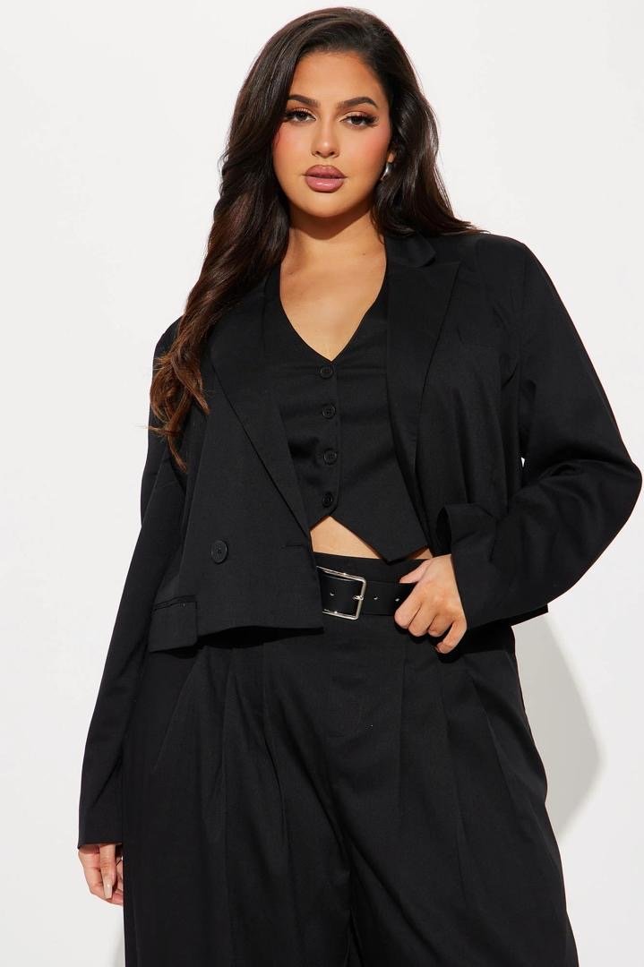 Women plus size three piece blazer set – black