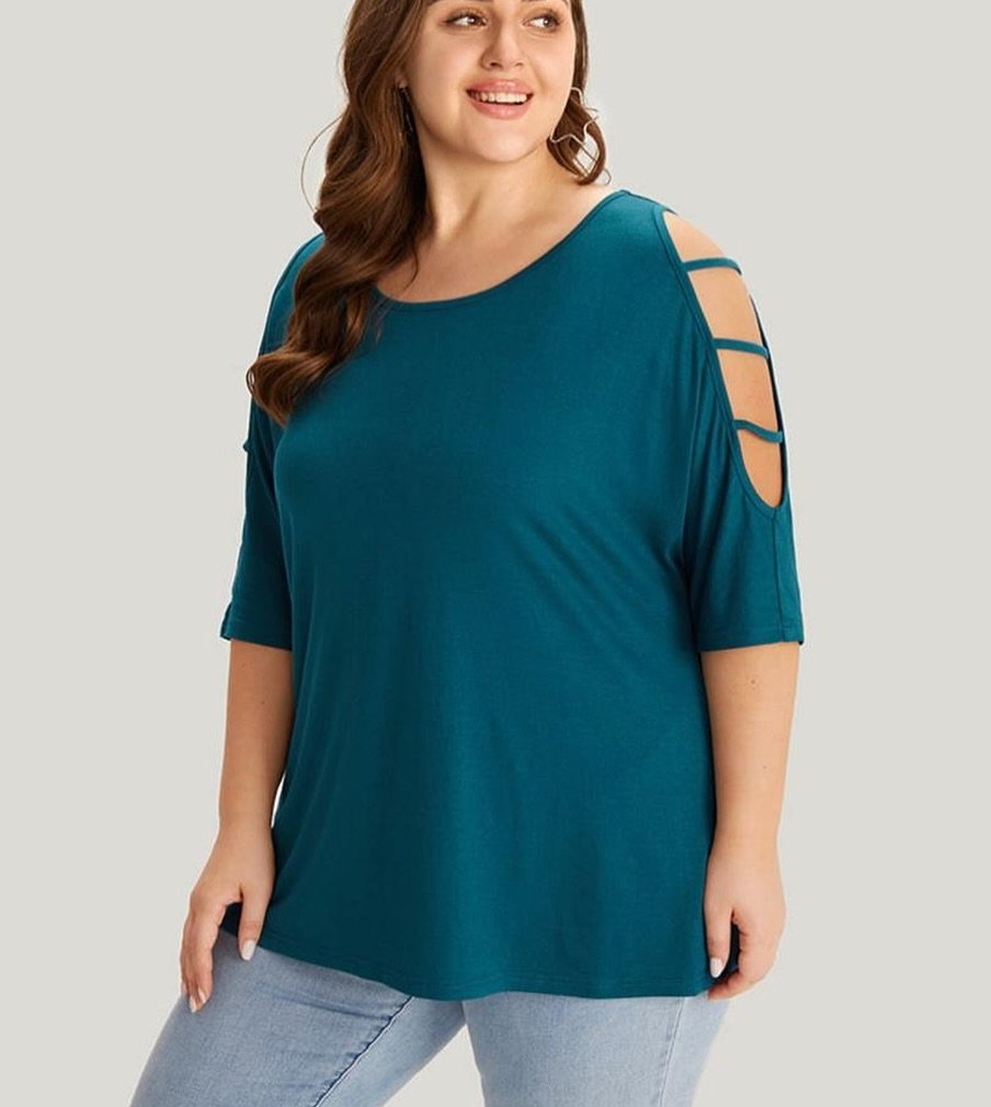 Women’s 3/4 Sleeve Hollowed Out Shoulder Top UK 22-24